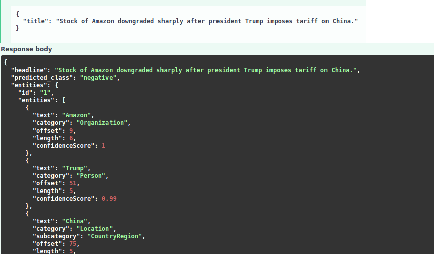 An AI-powered text analytics pipeline designed to help financial analysts and compliance teams process high volumes of textual analyst commentary. identify if the commentary is Positive / Neutral / Negative, determine whether it contains risky financial signals, and extract key entities like company names or financial instruments — all through a single, unified API.